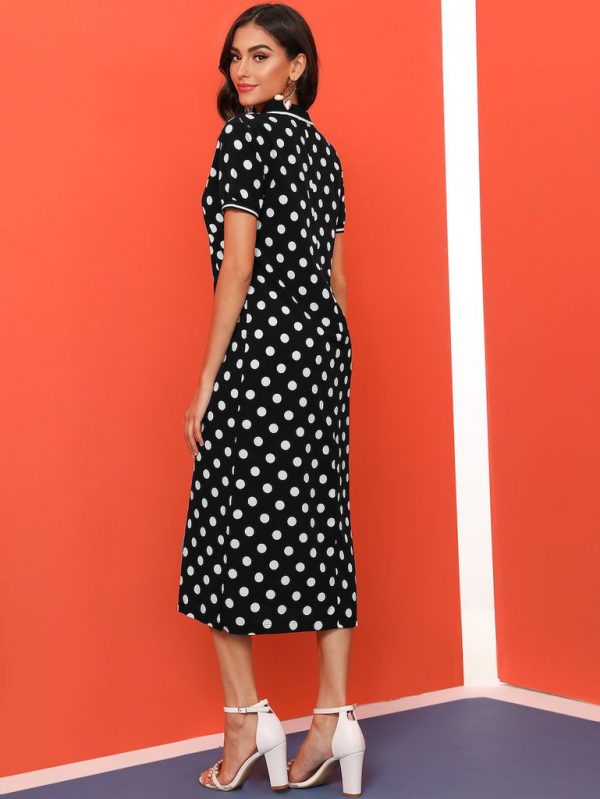 Đầm Polka Dot Đen Và Trắng Casual